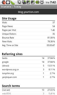 作为站长肯定想时刻了解自己网站的各方面的情况,看到很多IPhone、iPad用户有好多相应的应用,用Android的我感到心理不平衡,找了一下,发现谷歌分析Google Analytics原来有人开发了Android客户端,马上来与大家分享,希望对各个站长有帮助,这个软件就是GAnalyticz。