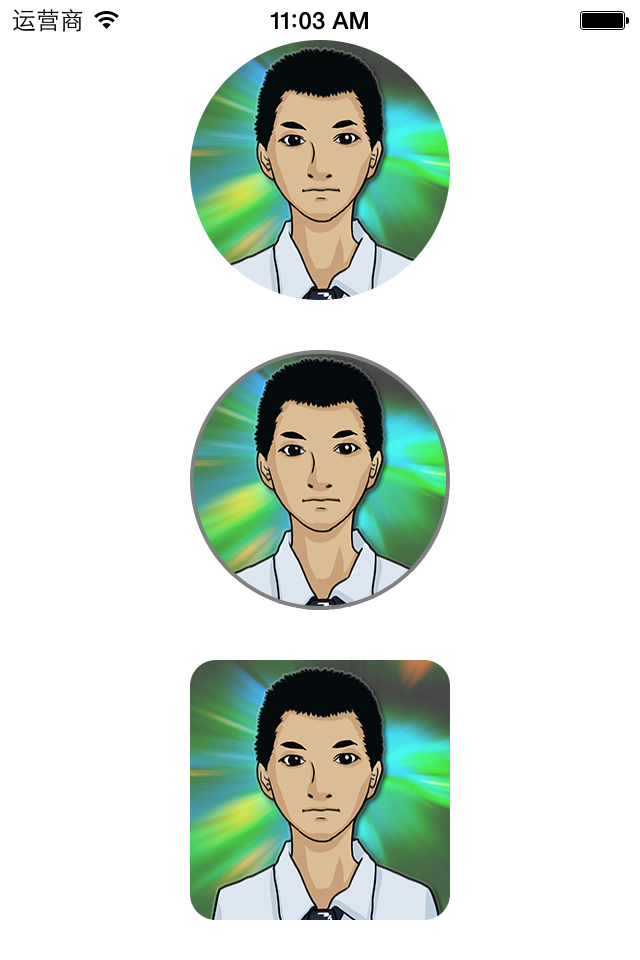 思路:使用viewlayer属性,通过设置cornerRadius来设置圆角的半径,当view是正方形同时圆角为边长一般时形成圆形的头像。