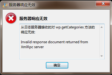 之前写过一篇日志关于用Windows live writer离线发布Wordpress日志。一开始使用很正常,有一天突然发现我的类别更新不了,他会提示:从日志服务器接收的对 wp.getCategories 方法的响应无效:的问题。如下图:
